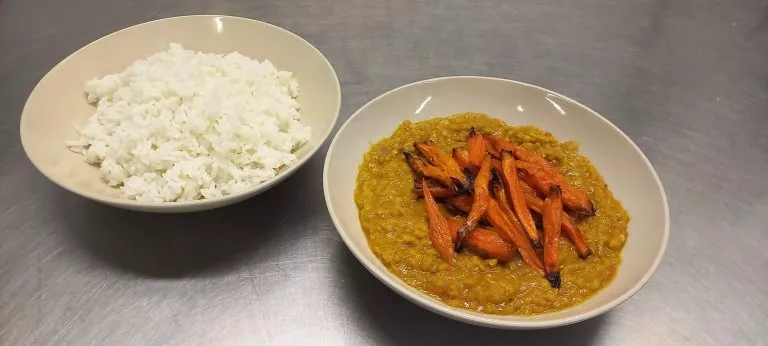 | Menu | Červená čočka na indický způsob s kokosovým mlékem a zelenými fazolkami, jasmínová rýže | 125 Kč |