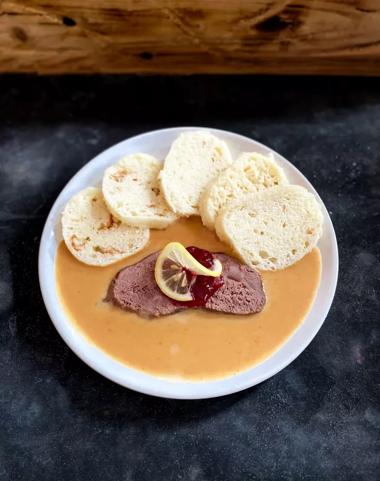 | Menu 2 | 2) VEPŘOVÝ GULÁŠ S NAŠÍM HOUSKOVÝM KNEDLÍKEM | 159 Kč |